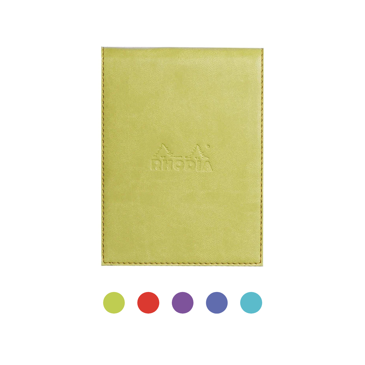 An integral accessory to your Rhodia notepad - the Rhodiarama notepad cover! Made of coloured Italian leatherette on the outside and orange Italian leatherette on the inside, the notepad cover features a Rhodia embossed pen loop and a name-card pocket. Each notepad cover also includes a 5x5 square grid head staple pad.