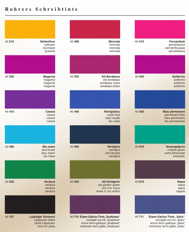 Rohrer & Klingner inks feature quality and brilliant colourants, mixed with specially treated water and minimal additives. This well-balanced composition of materials results in optimal cappiliarity of the inks and a smooth writing experience. The Schreibtinte inks are suitable for fountain pens, quills, and other calligraphy pens. No animal raw materials are used to produce these inks. On most writing surfaces (especially paper), the ink adheres well and adheres quickly. Each of the inks are treated with high quality and pleasant dies, that fueature both a high brilliance and a well-balanced intensity. The iron gall inks especially intensify when it oxidises with air. These inks are considered permanent and archivally safe. Calligraphy writing sample by Nicola Denuell.