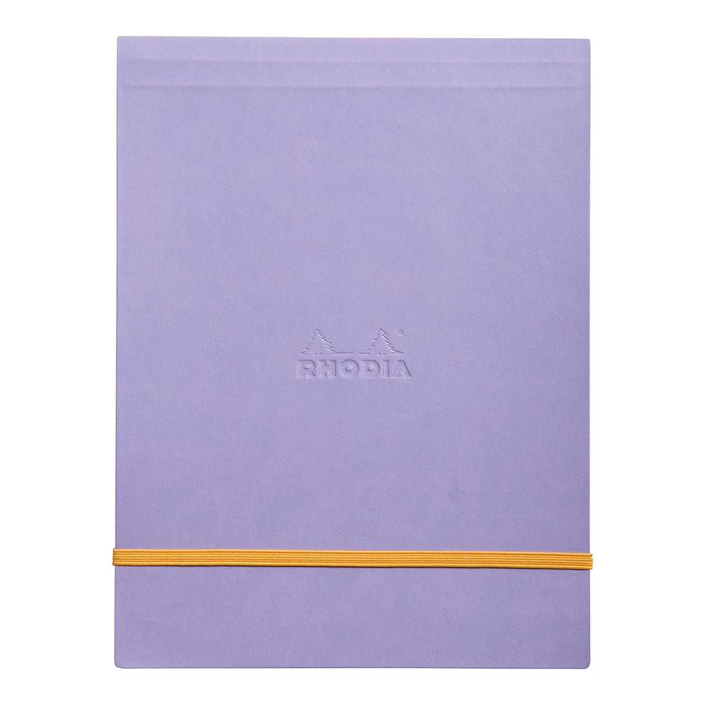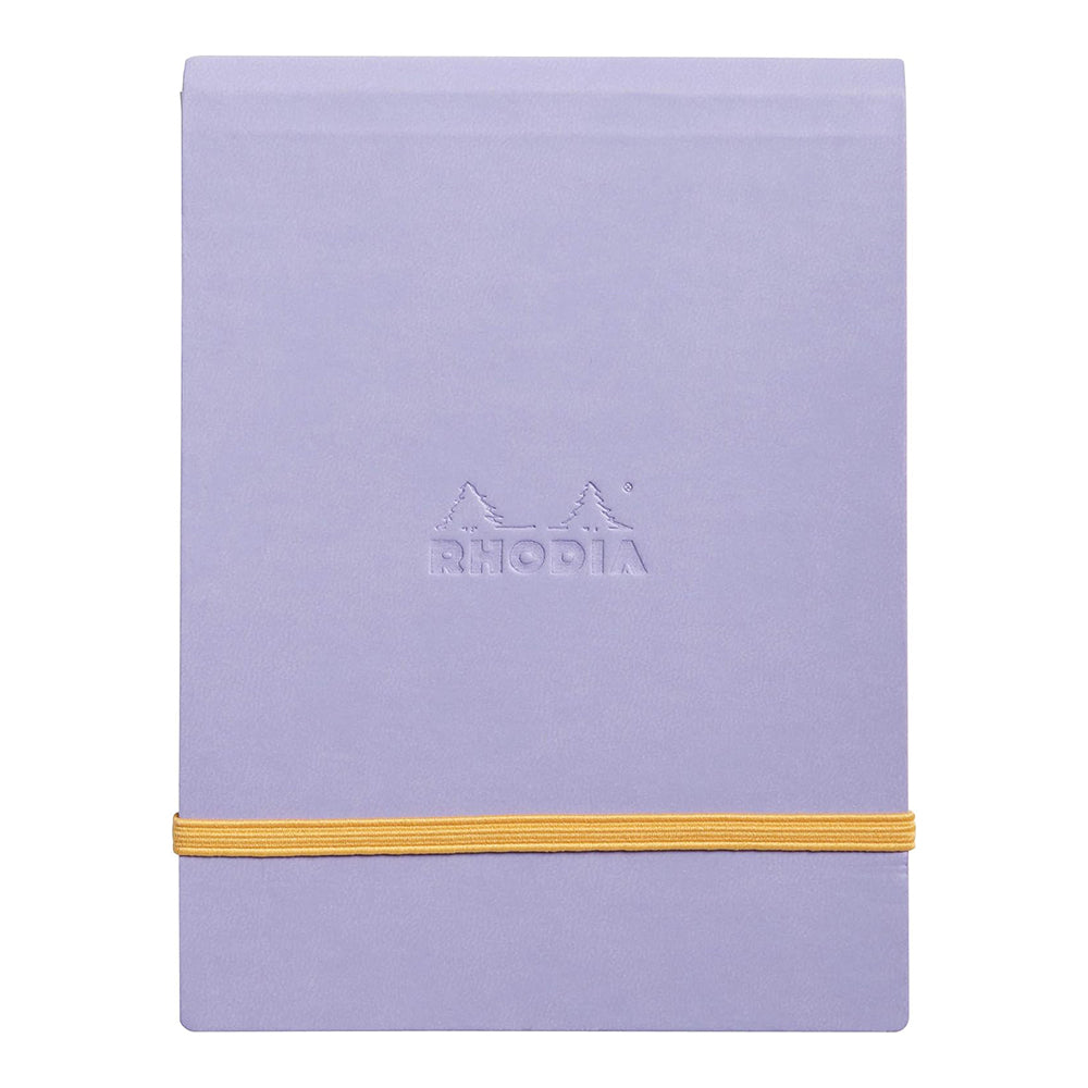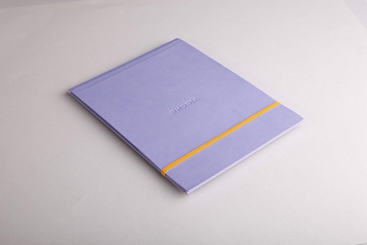 - Exterior made of Italian faux leather in assorted colours, with embossed Rhodia logo and elastic closure in orange
