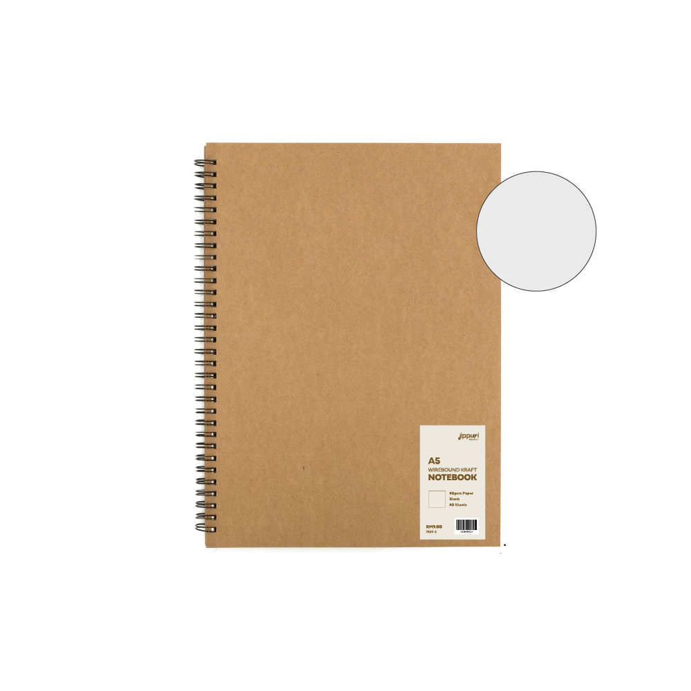 JIPPURI Wirebound Kraft Notebook 80g 80sh Blank