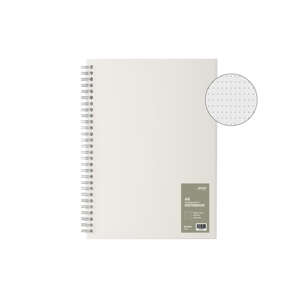 Perfect for notes, sketches, and bullet journaling, the JIPPURI Wirebound Notebook with dotted pages gives you structure without limits. Its sturdy wire binding and smooth dot grid paper make creativity and organization effortless.