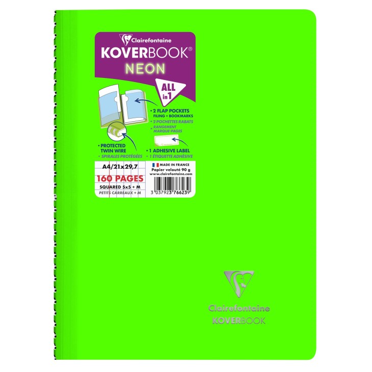 CLAIREFONTAINE Koverbook Neon Wirebound Notebook 21x29.7cm 80s 5x5 Sq