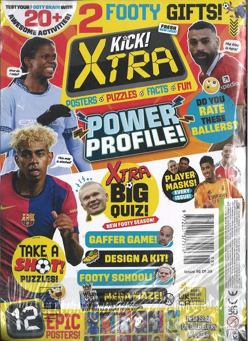 Kick! Extra is a fun and interactive monthly football magazine ideal for kids aged 6-12 years. Providing all the latest news and gossip from the world of football, presented in the exciting and engaging format of Kick!. On top of this, Kick Extra! is packed with even more posters, quizzes, puzzles and trivia, allowing kids to learn all about their favourite teams and players. There are also freebies aplenty and so for any football fanatic, this is simply a must have mag.