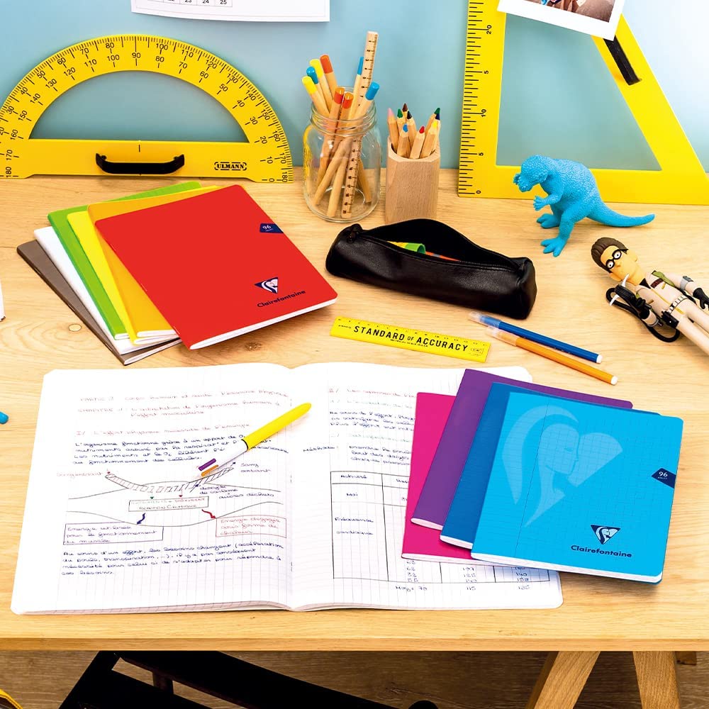 A4 in size. Paper is seyes ruled and is Clairefontaine Brushed Vellum 90 g. Notebook has a stapled spine. Notebook has 96 pages. Transparent Polypropylene cover.
