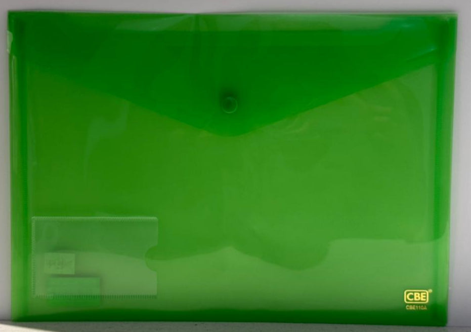 CBE Envelope File is made from assorted beautiful colours. Translucent envelopes keep contents visible, make finding doocuments so easy without opening your envelope. The size of file is slightly bigger than A4 / F4, it means you can put more documents inside, and make put documents in and out of the wallet much easier. It also keep items or documents flat, wrinkle, proof and weatherproof in these folders. And this model have a small pocket that you can put your name card or label the file.