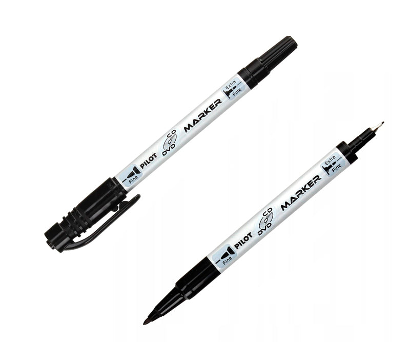 The Pilot Twin CD Marker (fine and extra fine point size) is specially designed to be used on CD and DVD without damaging the surface. This marker is available in 4 vivid colours. It is both xylene free and made of recycled material.