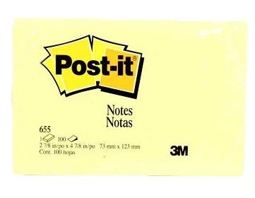 3M Post-it Classic Notes 654 3x3in 100s C.Yellow