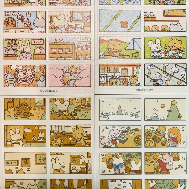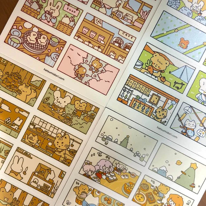 Discover the enchanting "Four-Season Corners" series sticker sheets! These delightful stickers showcase different corners of Delittles Town in specific seasons, allowing you to learn about the activities of Hatsu's adorable animal friends during each cozy time of the year. Let your imagination roam as you explore the captivating world of Delittles Town through these fun and charming stickers. Collect them all and dive into the magical stories behind each seasonal scene!