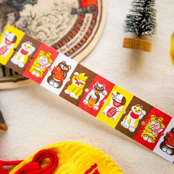 Carrying on the cheerful, lucky spirit from the Fortune Planner Series, the Little Lucky Friends Label Sticker Roll gathers a team of adorable good-luck companions: cats, dogs, foxes, tanukis, tigers, and bears, each bringing their own charm and wish for happiness and fortune.