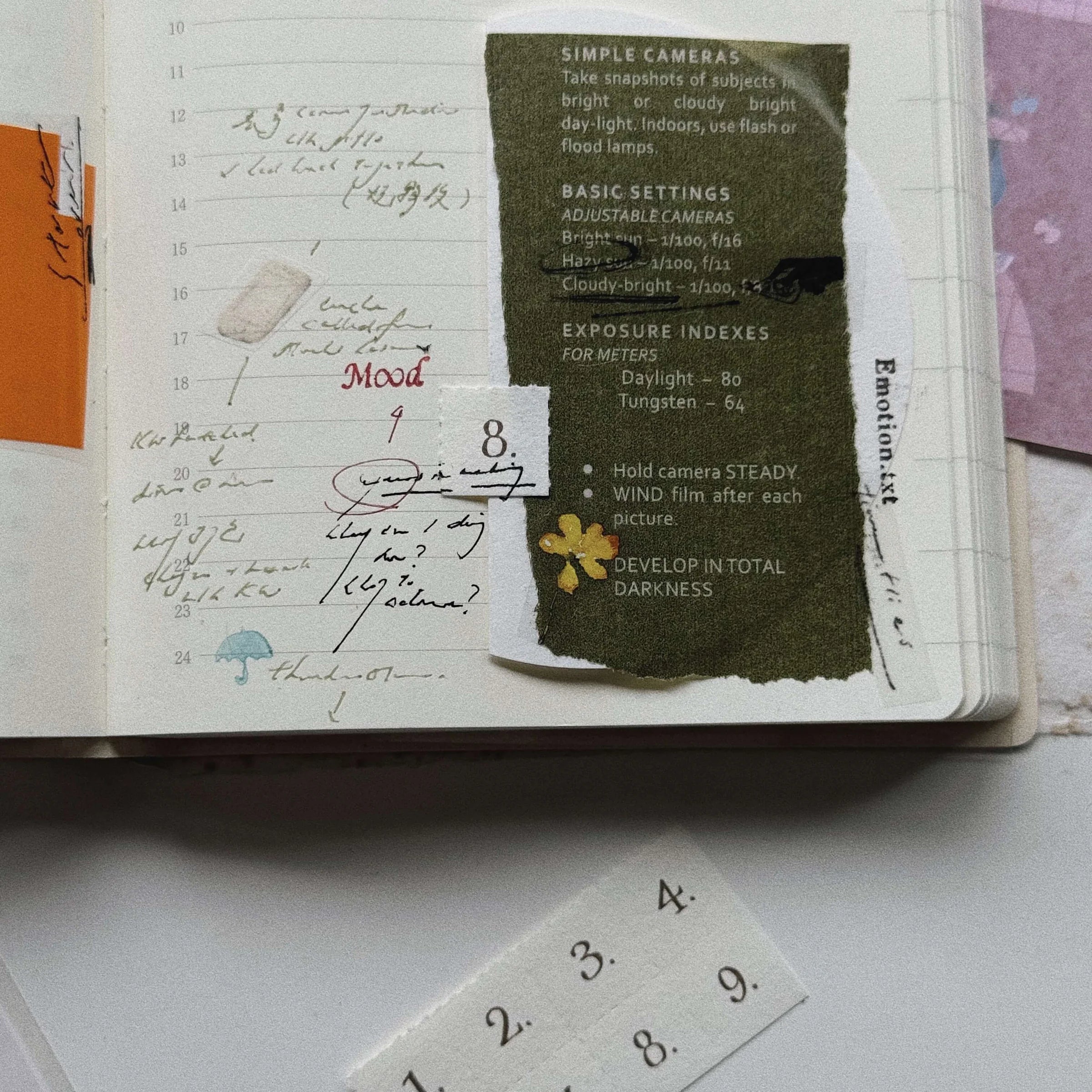 Each design transforms these quiet details into creative elements you can use in your journal, collages, or snail mail. From dots and frame counts to bold arrows and “EXPOSED” marks, the repetition and rhythm echo the slow unfolding of moments.