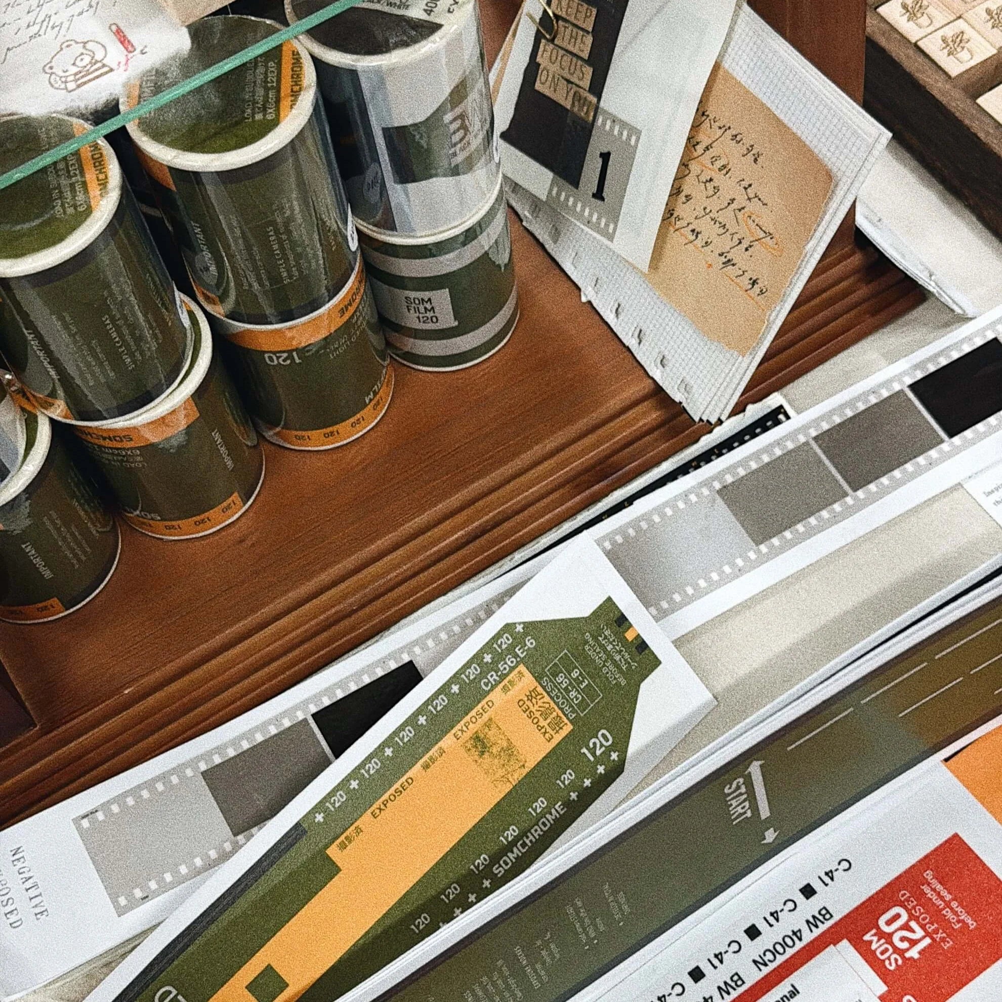 This trio of washi tapes reimagines the details hidden on 120 film backing paper. Frame numbers, arrows, grids, and exposure notes are transformed into thoughtful designs that echo the rhythm of analog photography. Each design pays tribute to the rhythm of analog photography, where time slows down and every frame is considered.
