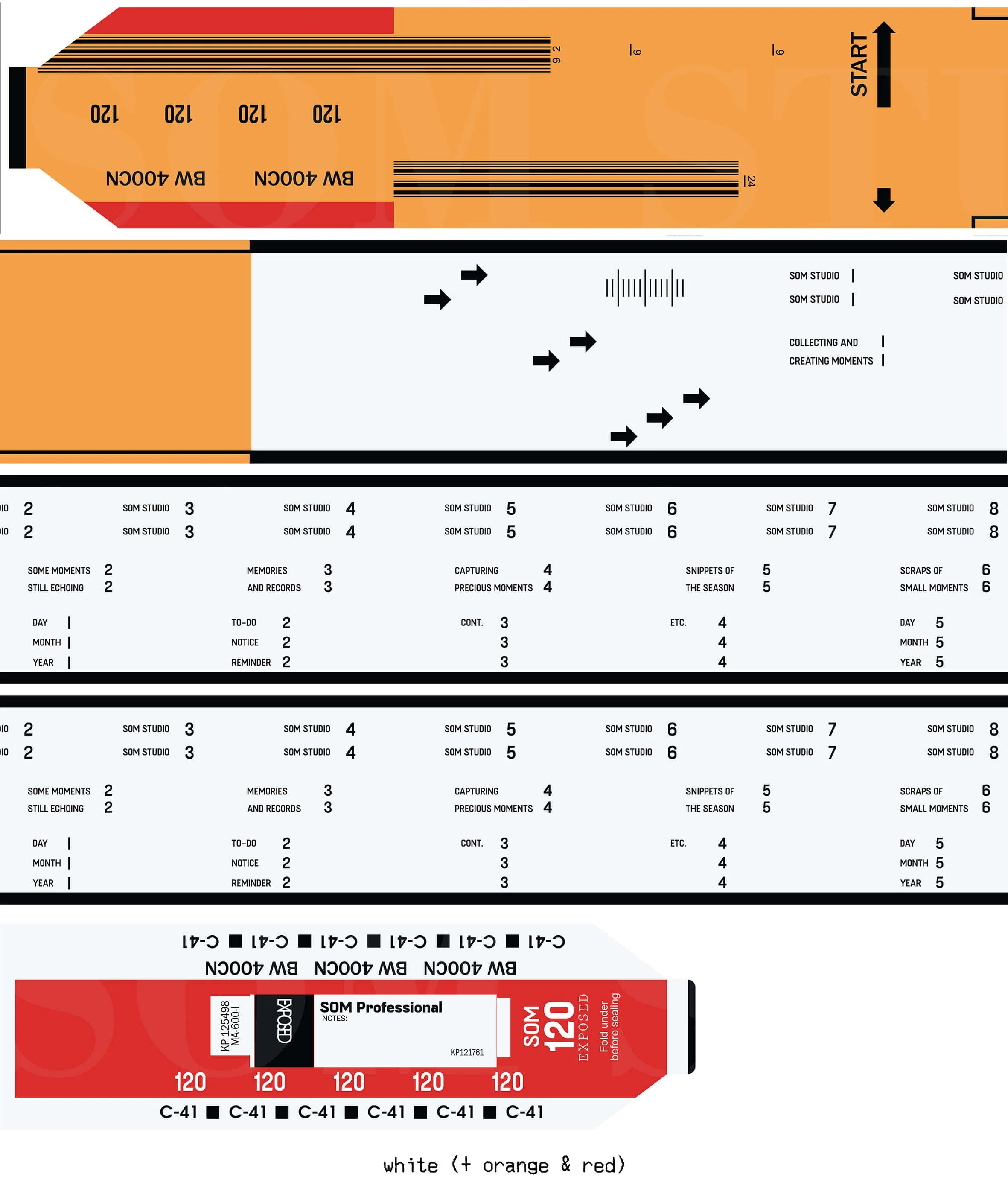 SOM STUDIO 120 Film Backing Paper Washi Tape White (Orange+Red)