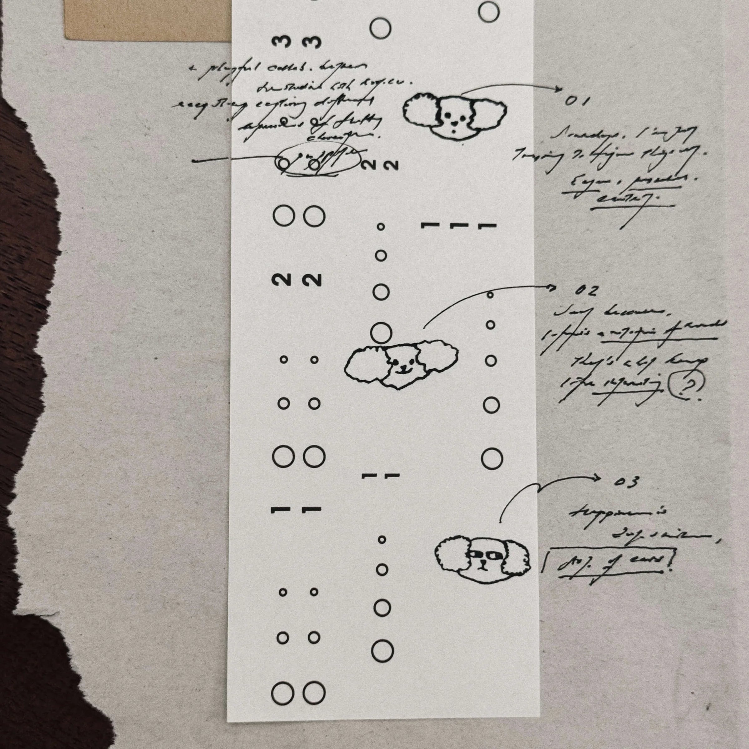 A playful collaboration featuring three pre-inked stamps of Puppette. Each design captures a different mood, from curious to cheeky to thoughtful. Each little face tells its own story, ready to slip into the margins of your journal, onto a note for a friend, or anywhere you’d like a touch of lighthearted charm.