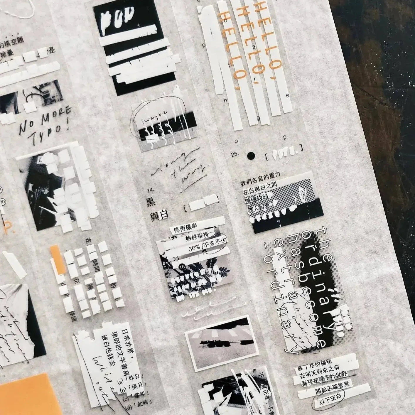 A unique blend of design and functionality for all your creative needs. This PET tape features designs inspired by correction tape and liquor, along with elements crafted by the designer. Perfect for scribbling on paper, it invites you to explore endless possibilities.