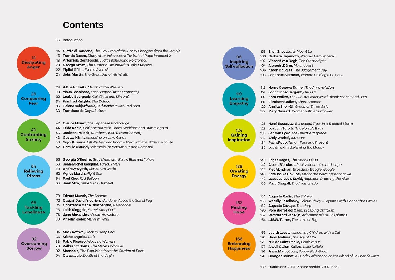 This guide introduces readers to new ways of looking at a wide range of art. Through careful examination and explanation, it investigates how engaging with art and drawing upon its ideas can help everyone feel connected and inspired. From Frida Kahlo confronting her anxieties to Henri Matisse embracing happiness, from Louise Bourgeois conquering fear to Auguste Rodin finding hope, it shows how you too can use art to work through difficult emotions and improve your mental wellbeing. Even art that unsettles can help us to think and feel differently.