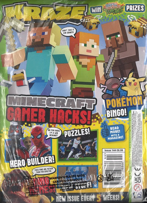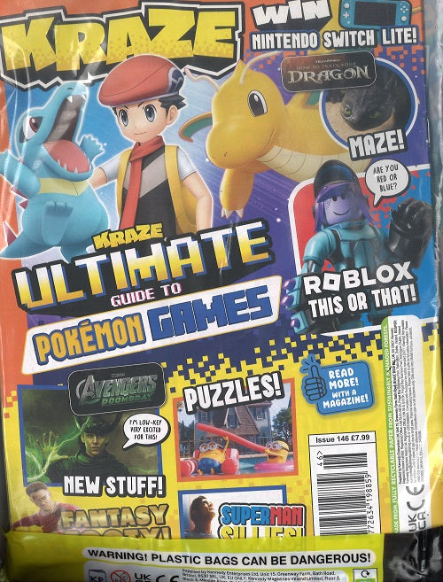 KRAZE! is an exciting, loud, and constantly fun magazine. It is packed with the essential tween features, brands, games, gadgets, YouTube, and more. Inside you will find reviews of movies, videogames, and the newest tech, comic strips, facts, posters, and more! There are also gifts and competitions for great prizes.