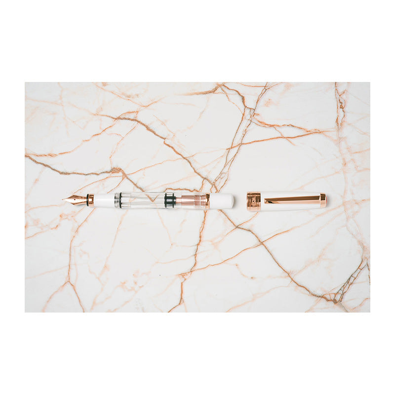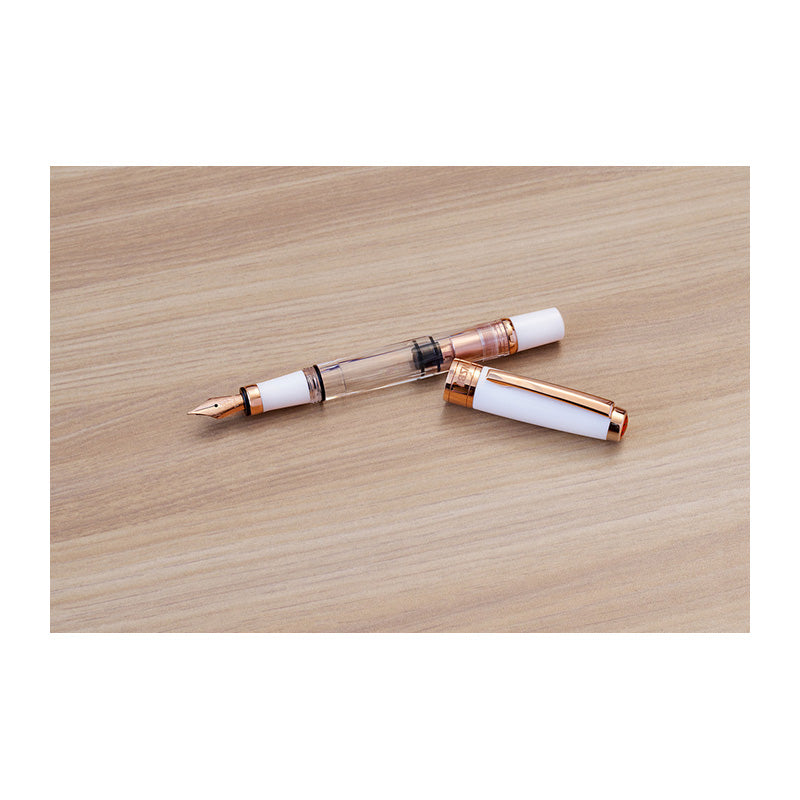 Our ever popular 580AL now with RoseGold finish. The nib, cap metal accents, inner mechanism, end cap metal accents are now all RoseGold plated. TWSBI Diamond 580, a classic fountain pen with a piston ink-filling system. By fusing the traditional mechanisms of the fountain pen with a modern industrial design, we have created an eye-catching fountain pen that is simultaneously appreciative of the past and relevant in the present. The Diamond 580 comes with a benchmark ink-filling mechanism and has all detachable parts. We felt that it was important to allow the user to disassemble and reassemble the pen and completely experience the traditional aspects of owning and using a fountain pen. **Please note : ink is not included.