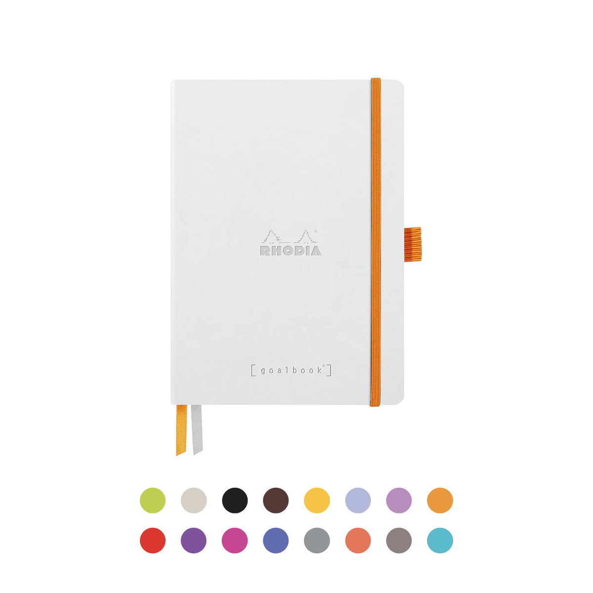 The Goalbook is perfect to organize your days and make sure you don't forget anything! It has numbered dot pages (224 pages), 6-page table of contents, an undated annual calendar and undated monthly pages. Each book also features two orange ribbon bookmarks, an expanding back pocket and elastic closure. Soft or hardcover available with embossed Rhodia logo. Glued spine. Premium 90g white brushed vellum paper, super smooth, acid-free, pH neutral. Dimension for Softcover A5: 14.5 x 21.0 cm (5 ½ x 8 ¾ ").