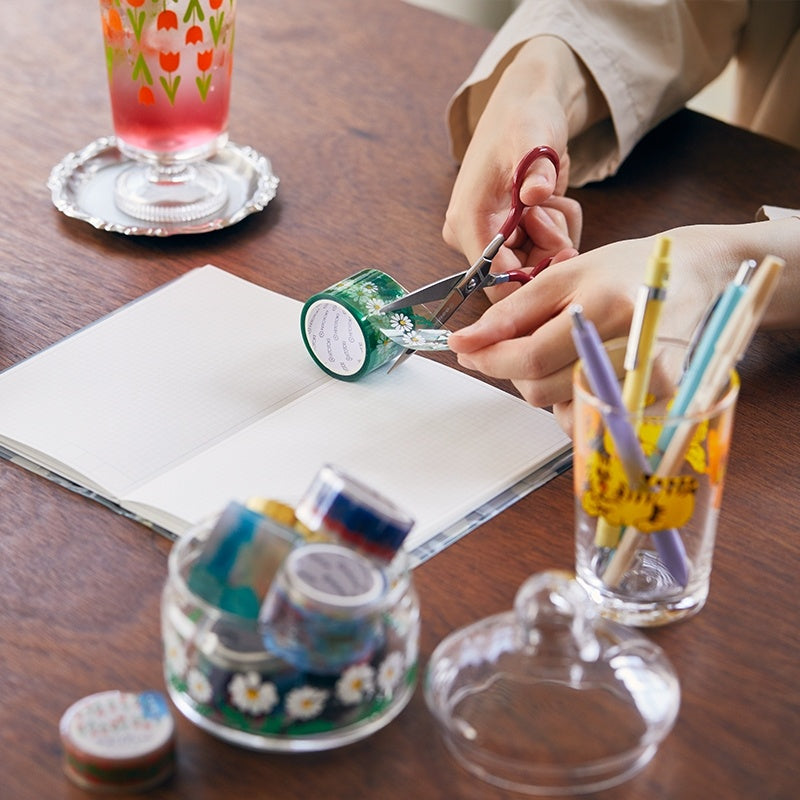 Transparent PET film tape which is easy to re-stick. It is flexible enough to stick on curved surfaces. It is best for decorating diaries, gifts, etc. Width: 20mm//Length: 5m. Note when using: Don't put it on your skin. This product is masking tape made from PET. Use an oil-based pen to write on the tape. Please use scissors or a tape dispenser when cutting tape. Please take off tapes from its end carefully. Please use a permanent marker for writing on tapes. Some surfaces may prevent sticking because of the materials and surrounding environment. Some surfaces may get adhesive or damaged. If you stick tapes and left it in the place of high temperature, it may come off. Avoid direct sunlight and hot / humid place.