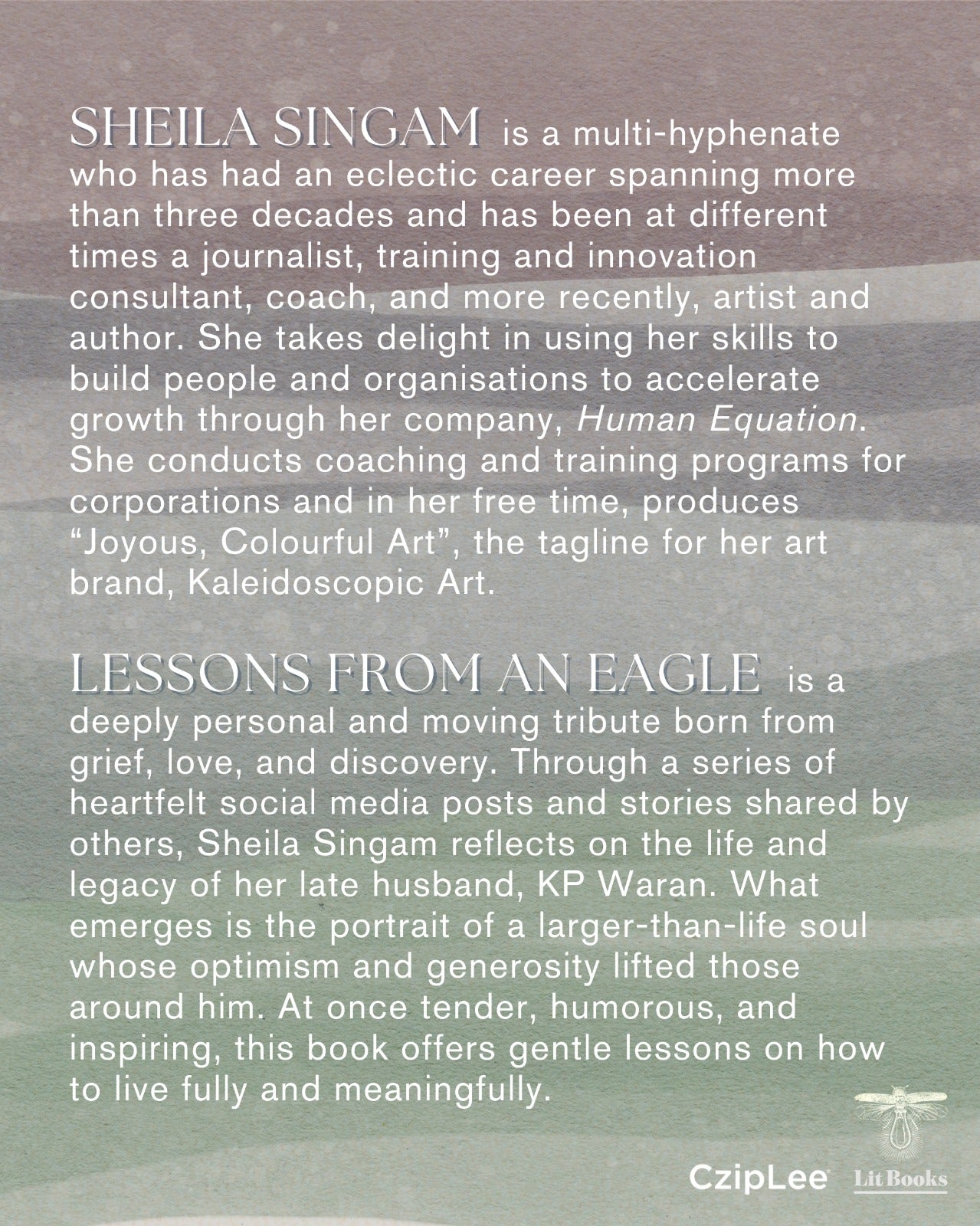 Join Elaine Lau of Lit Books at CzipLee, Bangsar Village 2 on Sunday, 18 January 2026 at 4pm as we welcome author Sheila Singam to discuss her debut book, Lessons from an Eagle.