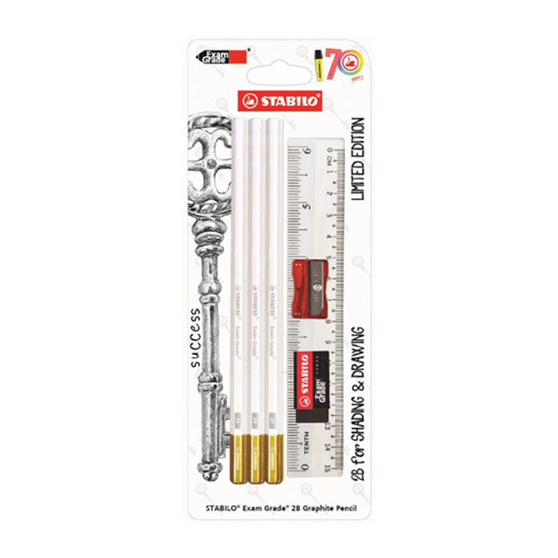 - Set contents: The blister card includes six STABILO Exam Grade 2B pencils, one sharpener, one eraser, and one ruler.