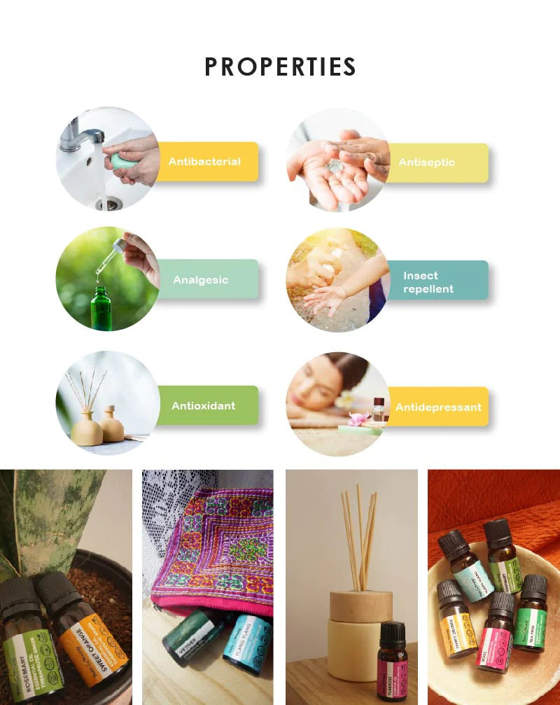 - Campurkan minyak pati (Essential Oil) sebanyak 10 hingga 20 titis ke dalam 30ml minyak pembawa sebelum digunakan.