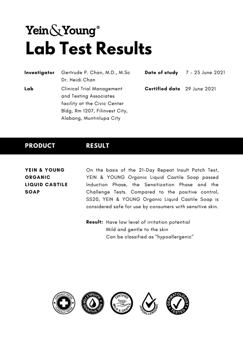 A true liquid soap made with Certified Organic Virgin Coconut Oil and Organic Virgin Olive Oil.