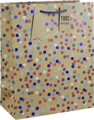 DESIGN: Multicolour Dots On Kraft Background. Highlight your finest touches. A label matching the bag is attached to the handle that allows you to write a message to the recipient. Ease of transport: With a handle attached to the bag, it can be transported easily in a simple and aesthetic way.