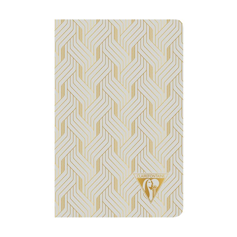 Are you fascinated by Art Deco design? Do you like light and soft colors? This is a Neo Deco notebook with original designs and a glamorous and chic style. Ivory colored velvet paper from Clairefontaine for unmatched writing. Textile seams for easy opening of the notebook and a sturdy cover. Card cover with matte film and gold print for a clean and modern design.