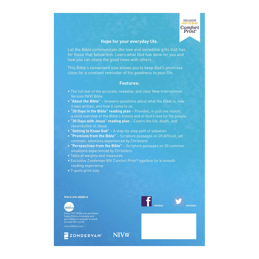 The New International Version of the Bible is today’s most popular modern-English translation. This low-cost Bible, featuring extra helps that are ideal for evangelism and an easy-to-read Comfort Print® typeface, is perfect for churches and ministries looking to distribute God’s Word in bulk through their outreach events.