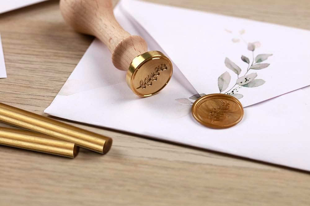 CONTENT: It contains 20 printed envelopes Pollen 120g in C6 format (11.4x16.2cm), 1 wooden handle, 3 gold wax sticks and 1 eucalyptus symbol brass pellet. PATTERNS: A collection of printed envelopes whose skilful blend of freshness and delicacy is distilled by branches of pink eucalyptus.PRACTICAL: This box contains everything you need to make beautiful wax seals. Ideal for sending your wedding invitations, invitations or for any important event. PREMIUM CORRESPONDENCE: This beautiful stamp will enhance your correspondence for those near and dear to you